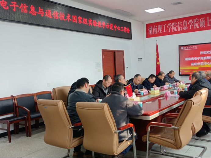 2024年3月7日下午,我院电子信息与通信技术国家级实验教学示范中心建设工作推进会在实训楼17517圆满召开。湖南省大学生电子设计竞赛责任专家组组长、湖南大学机器人工程学院黎福海教授,湖南省大学生电子设计竞赛组委会秘书长,湖南科技大学电气工程学院吴新开教授和湖南省电子信息技术研究会副秘书长冯良先生受邀莅临指导,学校党委委员、副校长刘长辉教授、教务处副处长许文苑教授、学院负责人及企业界代表齐聚一堂,共同为实验教学示范中心的高质量发展绘制宏伟蓝图。