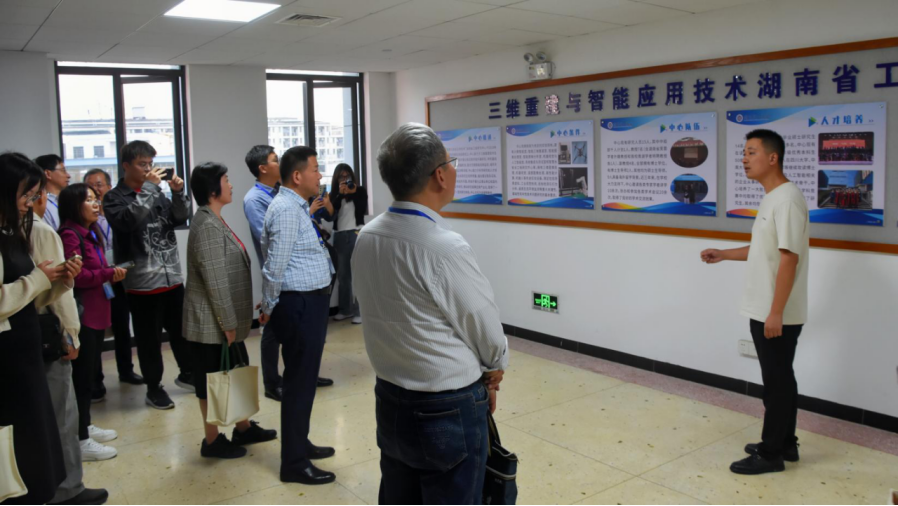 研讨会后,与会专家学者深入我校“三维重建与智能应用技术”湖南省工程研究中心、“信息光子学与空间光通信”湖南省重点实验室考察交流。