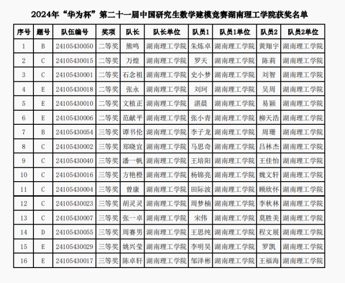 第二十一届“华为杯”全国研究生数学建模竞赛再传捷报