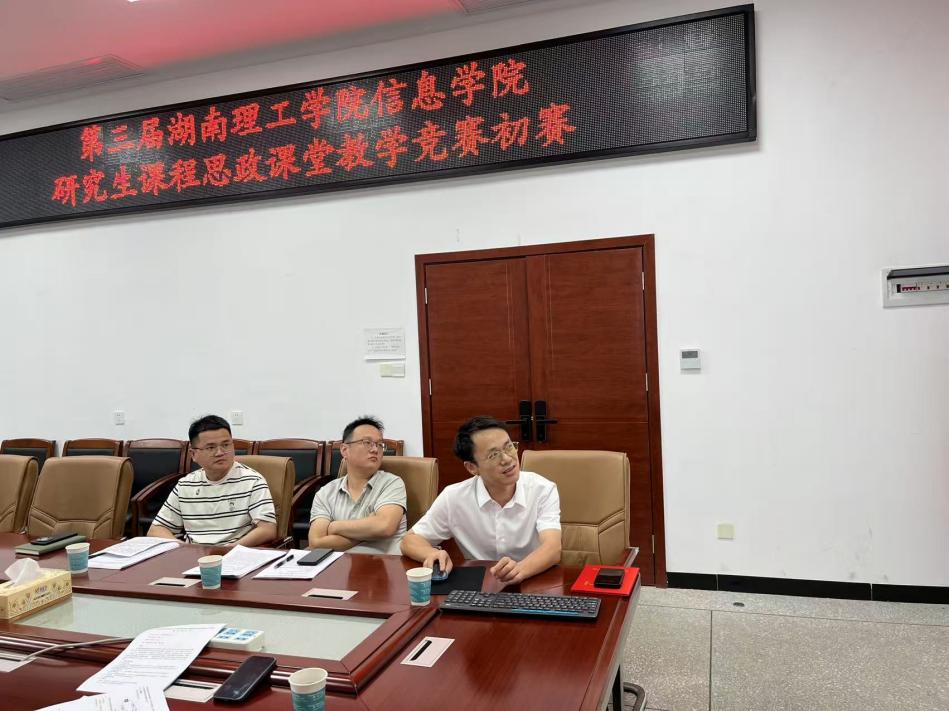 2025年6月20日上午,湖南理工学院太阳集团tyc151第三届研究生课程思政课堂教学竞赛在17517教室顺利举行。此次竞赛旨在深入贯彻落实立德树人根本任务,推进研究生课程思政建设,促进专业教育与思政教育同向同行,引导研究生任课教师积极探索课程思政教学方法与路径,全面提升研究生课程思政教学质量和育人水平。太阳集团tyc151院长吴健辉、党委书记肖迎群出席活动,共同见证教师们的精彩表现。