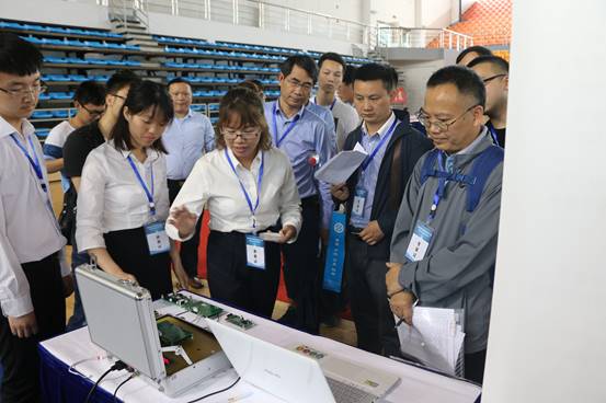 在参赛作品展示环节,湖南省教育厅副厅长葛建中来到展台前亲自体验我校参赛作品,并对学生赞赏有加,鼓励同学们继续努力。
