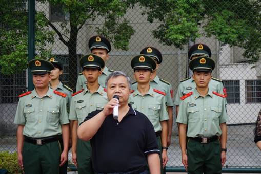 甘向阳做军训动员讲话。他对2019级全体信息新生的到来表示热烈欢迎,并鼓励新生在军训期间要敢于拼搏、超越自己,努力发扬湖理信息人吃苦耐劳的精神。同时他希望新生听从教官指令,刻苦训练,争取早日完成军训操练任务。他表示,今天你们以学院为荣。明天学院将以你们为荣。