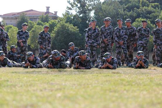 阳光大草坪上,教官演示低位匍匐前进、背枪匍匐前进,孩子们艳羡教官们精湛的技术。抱着无限的热情和草坪拥抱,即使磨破手指,痛痒不休,也难掩孩子们的欢声笑语。苦中作乐,孩子们也在慢慢学会成长。