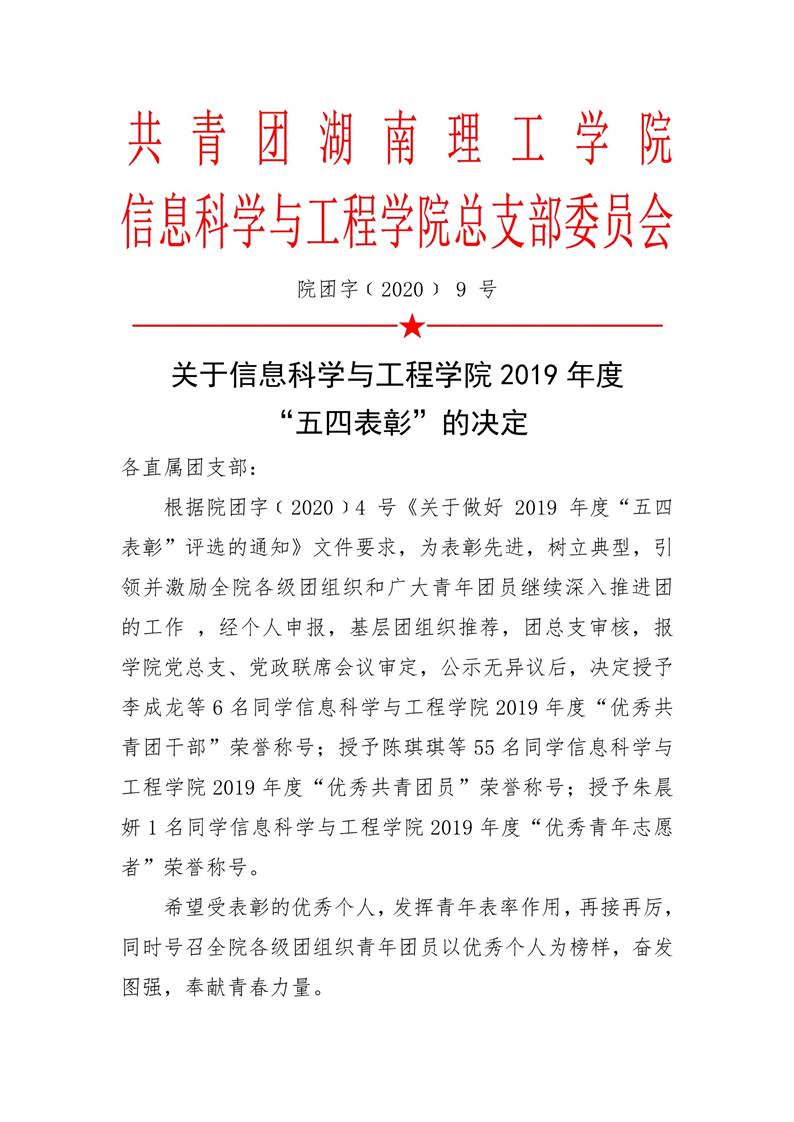关于太阳集团tyc1512019年度”五四表彰“的决定