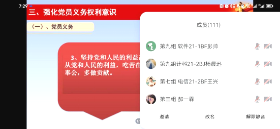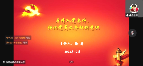 为规范发展党员工作,确保新发展党员的质量,徐丹带领全体入党积极分子厘清入党条件,强化党员权利义务意识,一起研读《发展党员工作手册》,带大家熟悉党员的发展流程,着重介绍党员发展的具体工作程序;徐丹从“党员义务”、“党员权利”、“如何践行党员的权利和义务”三个方面阐述党员应当如何强化自身、发挥榜样作用。