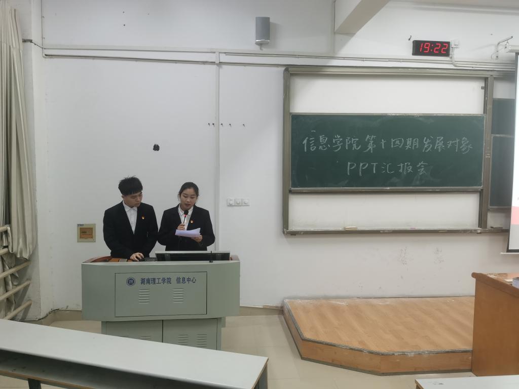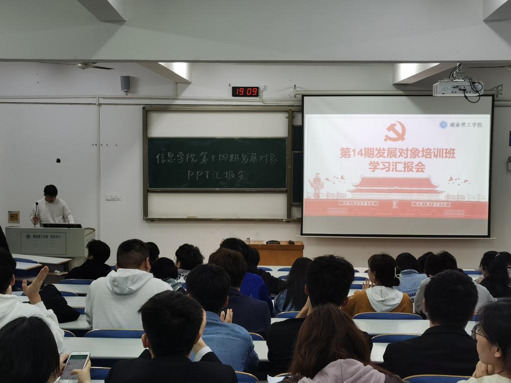 4月27日19:00,信息学院承办的校第十四期发展对象培训班学习汇报会在15317顺利举行,会议由院学生分会学习纪检部谭志邦主持,全体发展对象参加。