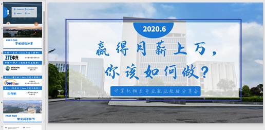 已在业内知名企业就业的的曾广、余斌、周少璇、陈晓明依次介绍自身求职心路历程,并从就业的时机、就业前准备工作、面试的经验、如何制作一份令人满意的简历、如何把握学校实训实习重要时间节点等问题为同学们进行深入浅出的讲解。