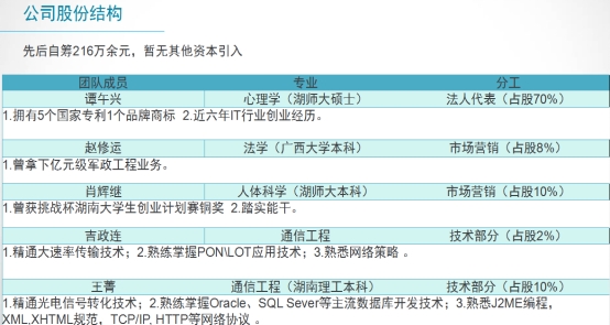 在大三下学期时我们共同创建了长沙市兴继成网络科技有限公司。公司主营业务是物联网、网络技术、软件研发、网络综合布线等,我当时时任该公司综合部总监,在不耽误学校课程的前提下,往返于长沙岳阳两地。每天凌晨两点钟以后睡觉、早上七点钟之前起床,节假日也不休息。通过努力,还好两者都没有拉下。在所有人的共同努力下,新公司成立后发展迅速,借助国家对互联网+平台的大力推广和支持,公司拿下了多项小区、旅游度假区等地方的物联网投资经营权。目前公司营业额达600万人民币,并于年底成功在湖南股权交易所Q板优选板展示,展示代码为:302739HN。在经济下行的大环境下,公司依然保持着良好的发展势头,营业额达到了1000余万元。