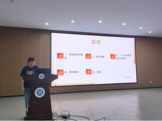 随后,五位优秀毕业生依次上台分享考研经验。计算机科学与技术专业的许盼、软件工程专业的袁新星、自动化专业的聂桂阳、电子信息工程专业的王兴以及通信工程专业的周俊,分别结合自身专业特点与考研经历,围绕择校标准与策略、各科学习方法、压力应对等方面倾囊相授。他们毫无保留地分享了备考过程中的宝贵经验、遇到的困难及应对方法,为在场同学提供了极具针对性和实用性的参考,赢得了阵阵掌声。