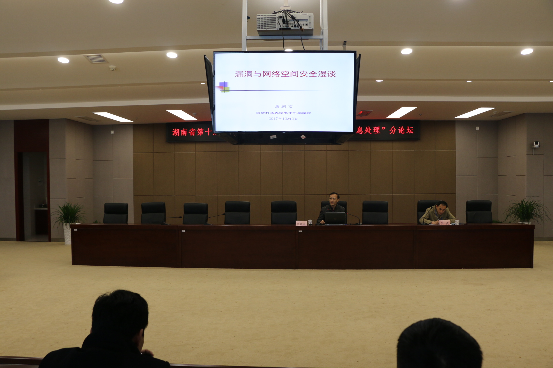 开幕式由研究生处处长唐课文主持。张国云代表学校致欢迎辞,他对参加本次论坛的领导、专家和研究生表示热烈欢迎,并简要介绍了我校总体情况,以及相关学科建设和研究生教育情况,希望广大研究生通过本次论坛,相互交流,取长补短,汲取更多的创新思想和智慧,并结合自己的研究课题,取得更多的创新成果。随后,研究生处副处长黎振强向大会报告了本次分论坛筹备情况。接着,唐朝京教授、孙晓明研究员分别做了《漏洞与网络空间安全漫谈》、《精确量子算法》的学术报告。两场报告内容丰富,精彩纷呈,为与会代表奉上了丰盛的学术大餐。