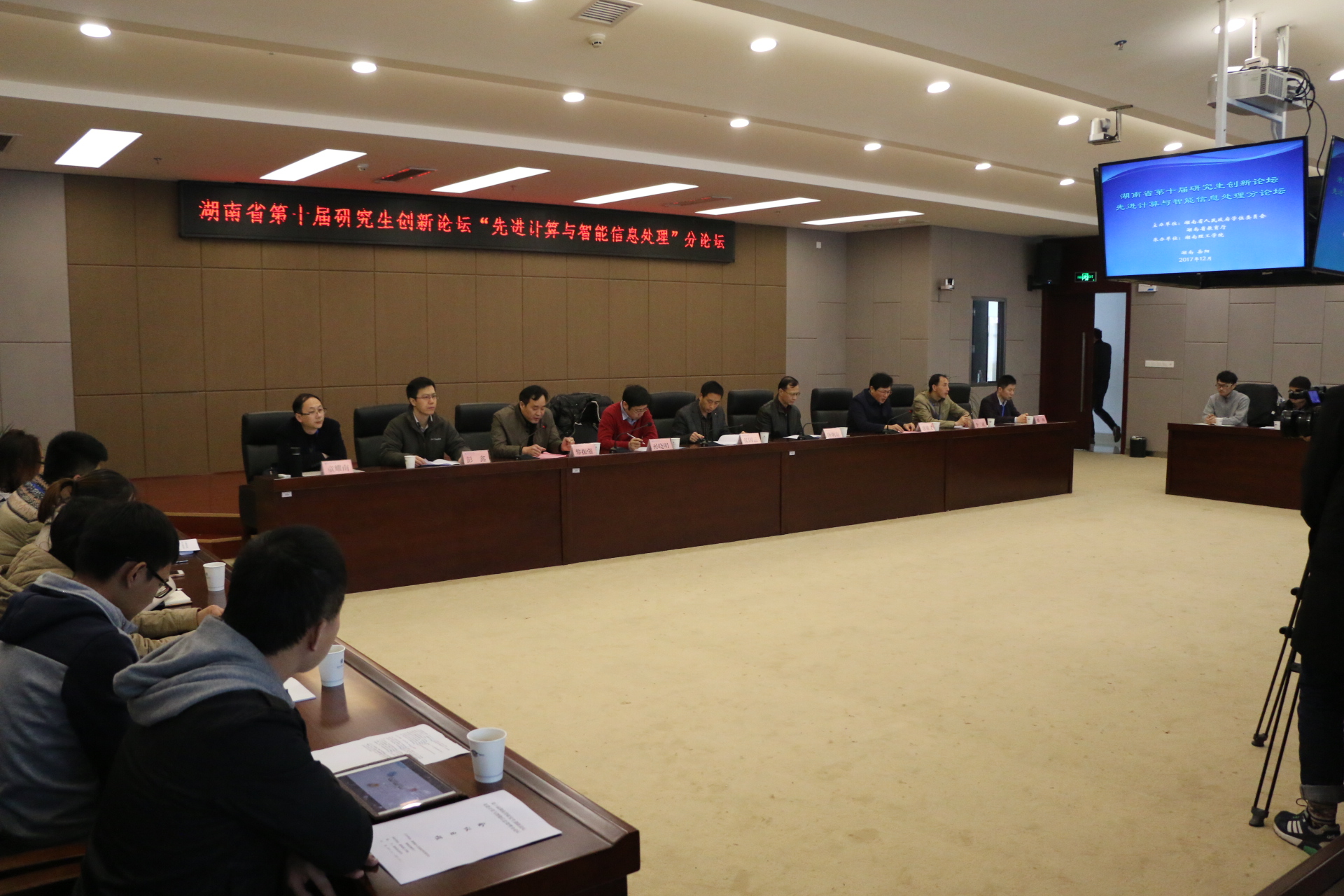 12月2日,由湖南省人民政府学位委员会和湖南省教育厅主办,我校承办的湖南省第十届研究生创新论坛“先进计算与智能信息处理”分论坛在我校新图书馆举行。学校副校长张国云,国务院学位委员会信息与通信工程学科评议组成员、国防科技大学唐朝京教授,首批国家优青、国家万人计划青年拔尖人才、中国科学院计算技术研究所孙晓明研究员,以及我校研究生处、太阳集团tyc151相关负责人,中南大学、湖南大学等省内高校研究生代表,太阳集团tyc151相关教师和研究生近100人参加了论坛。