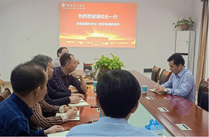 调研会上,汤小红充分肯定了我院近年来在人才培养、学科建设、科学研究和社会服务等方面取得的重大成绩。他指出,“十四五”期间,学校确定了改办大学和建设博士学位授予单位“两大任务”,将努力朝着建设特色鲜明的国内高水平大学的目标迈进。他强调,信息学院作为“信息与通信工程”省双一流学科和博士学位授权立项建设学科的依托单位,要围绕学校发展目标,做好规划、找准问题、创新措施,为学校事业发展赋能新力量;要大力引进优秀年轻博士和高层次人才,不断提高专任教师中博士占比;要加大学科带头人和学术骨干的培养力度,发挥“举旗人”在团队建设中的作用;要对接国家创新驱动发展、湖南省“三高四新”战略和岳阳市““三区一中心”建设需求,围绕国家和区域发展中的重大科技问题开展科学研究和社会服务,力争在国家重大科技项目、国家级科技创新平台和高级别科技成果奖励等方面取得新突破。