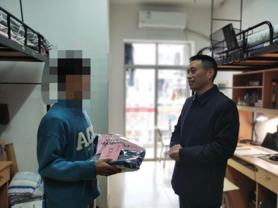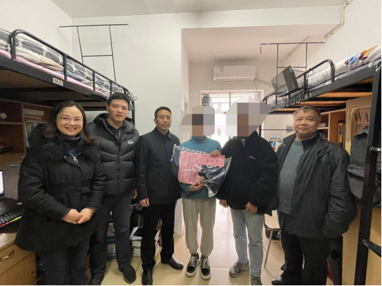 12月28日15:30,校党委副书记张国云、校党委学工部副部长曾谦、院党委书记甘向阳、院党委副书记徐丹及辅导员王勤、许婕菲、陶海兰一行前往太阳集团tyc15117栋寝室楼慰问孤困学生。