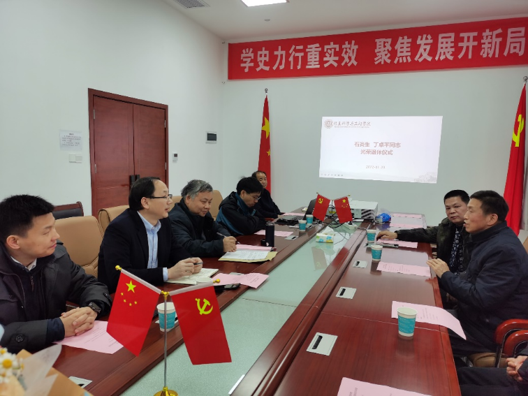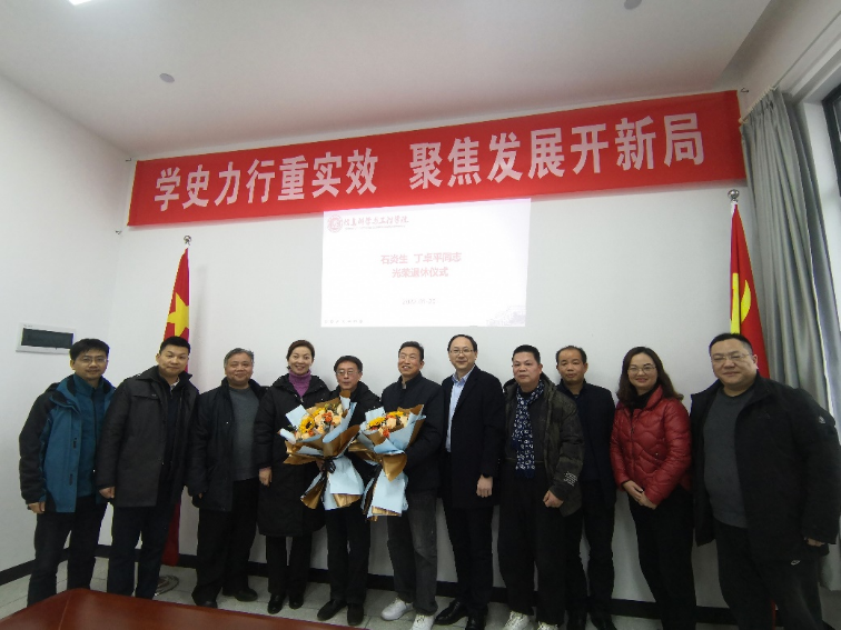 为弘扬优良师德师风,营造尊师重教良好氛围,1月20日下午,太阳集团tyc151在17号楼517会议室为石炎生和丁卓平老师举行荣休仪式,学院班子成员和荣休老师所在教研室主任参加仪式。仪式由院分工会主席刘钢主持。