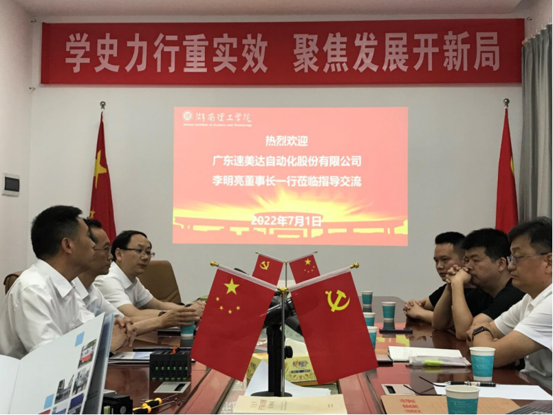 7月1日上午,广东速美达自动化股份有限公司董事长李明亮一行4人来校洽谈产学研合作事宜。座谈会在17517会议室召开,校党委副书记张国云、副校长丁跃浇带信息和机械两个学院的相关骨干教师代表参加,副校长丁跃浇主持会议。