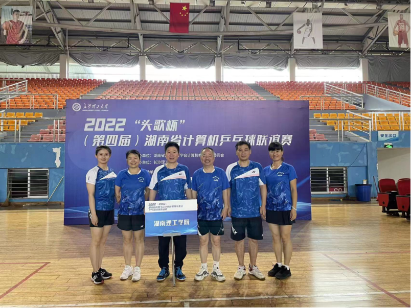 2022年7月18日,湖南省教育学会计算机专委会乒乓球联谊赛在长沙理工大学举行。本次比赛共有25个大学代表队参赛,我校教职工乒乓球代表队队员们经过团结求索、激烈拼搏,获得第七名的好成绩,充分展现了我校教职工积极向上、勇于进取的精神面貌。