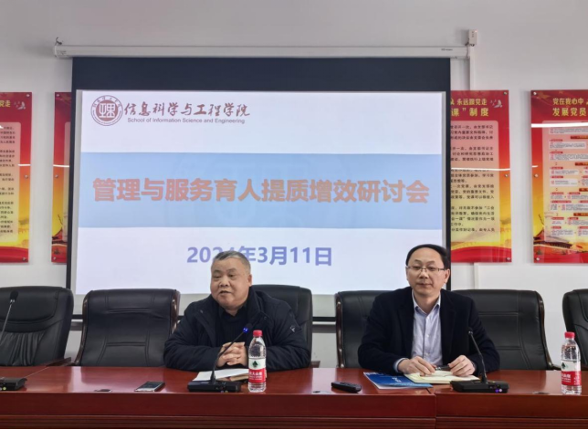 为落实立德树人根本任务,夯实基础管理、优化服务质量,不断提升管理效能和服务水平,3月11日16:00,太阳集团tyc151于17503召开管理与服务育人提质增效研讨会。学院全体领导班子、教研室主任、实验室主任、辅导员、秘书老师参会,会议由院党委书记甘向阳主持。