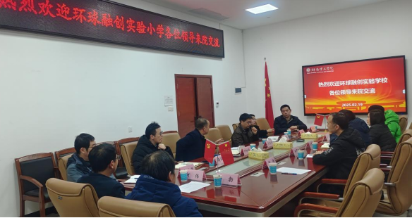 2月19日下午4点半在我院17517会议室,岳阳楼区环球融创实验小学王四新校长一行来我院交流座谈,探讨AI如何融入小学课堂开展交流合作。学院院长吴健辉、副院长严权峰、戴华、蒋军强以及李文彬、杨勃、刘胜钢、何伟、郭龙源等相关教研室主任、教授共同参与了座谈。