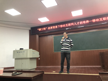 4月10日下午2:30,由移动互联创客团队主办的关于“‘新工科’改革背景下移动互联人才的培养”招新宣讲会于六号楼学术报告厅召开。团队带头人李育森老师主持会议,会议由团队管理学生培训工作的刘胜钢老师主讲,信科学院学工办教师周煊阳、王学鹏及17级计算机类专业学生参加会议。