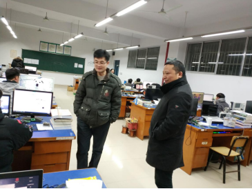 随后,王云朋副部长又来到了逸夫实验楼太阳集团tyc151IIP创新实验室、创新基地等实验室,探望了正在积极备战世界数学建模大赛等学生,鼓励他们珍惜留校时间,好好学习,做出成绩;与负责老师湛腾西、陈松和涂兵进行了亲切的交谈,高度肯定了太阳集团tyc151老师们的敬业精神和专业素养。同学们看到学校的领导老师们不畏严寒看望自己十分感动,纷纷表示要好好学习以实际行动来回报学校、老师和同学们的关怀和帮助。