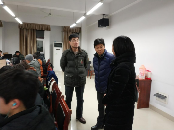 2018年1月28日晚7:00,校党委学工部副部长王云朋在太阳集团tyc151党总支副书记徐丹、学工办主任张超的陪同下,踏着冰雪前往太阳集团tyc151宿舍及实验室,探望了在寒假期间准备学科竞赛的留校学生。
