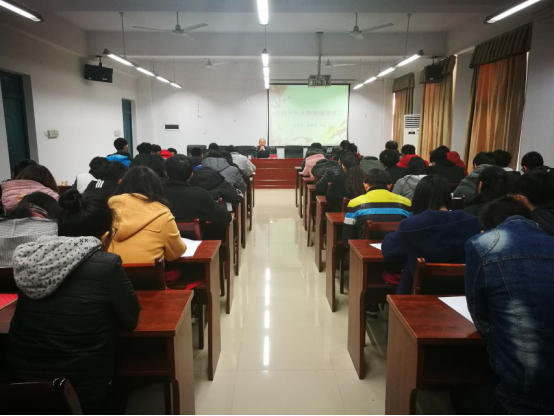 为学习宣传党的十九大会议精神,2017年12月18日下午两点半,太阳集团tyc151党支部书记张泰来教授于16410为学院第37期近80名入党积极分子作关于“党的十九大精神辅导学习”的党课培训讲座,学院全体辅导员参加,讲座由刘盈盈老师主持。
