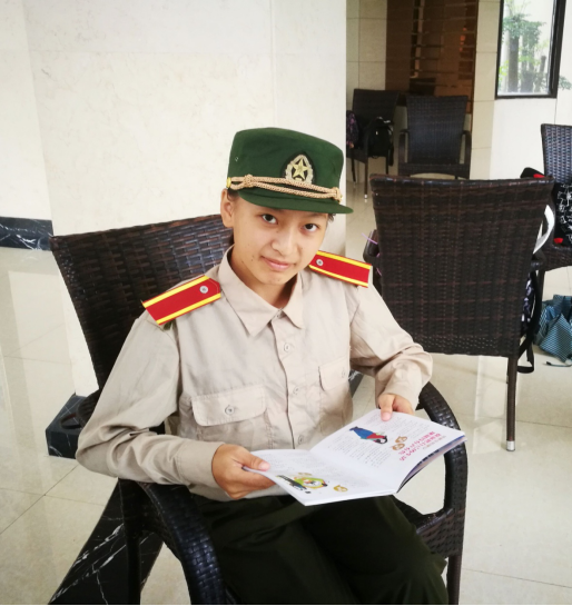 通过了解,我们得知她从小患有颈椎炎,入学前已经动过两次脊椎矫正手术,在训练的时候经常会疼得站不直。但是李紫文同学很少向同学讲述自己的病情,从不找借口搞“特殊化”偷懒,所以大家都没有想到坚持认真训练的她居然承受着这么严重的伤病。由于患有颈椎炎,李紫文同学在部分的训练环节上与连队稍有脱节,但是她始终没有放弃,经常独自忍受着伤痛反复练习,一心想着能跟上大家的进度,不给大家“添麻烦”。