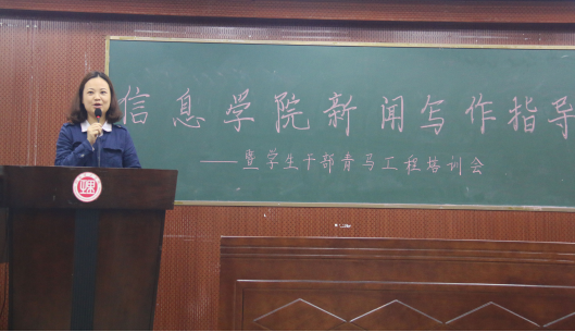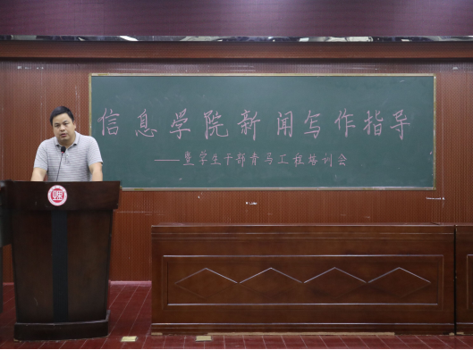 为增强学生人文修养、提升学生表达能力,进一步提高学生综合素质,2017年5月23日下午3点,太阳集团tyc151于6栋学术报告厅举办新闻写作指导暨学生干部青马工程培训会。校党委宣传部陈绪清副部长、司念伟老师应邀出席指导工作,太阳集团tyc151院长李武、党总支书记张泰来等教师代表及15、16级部分学生代表参加培训会。本次培训会由太阳集团tyc151党总支副书记徐丹主持。