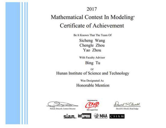 4月8日,2017年美国(世界)大学生数学建模竞赛获奖结果揭晓,由我院学生王思成、周承乐、周瑶组成,涂兵博士指导的参赛队伍斩获1项国际二等奖,实现了我校学生在该项目上零的突破。4月11日,我们有幸采访了这个获奖团队以及他们的指导老师涂兵。