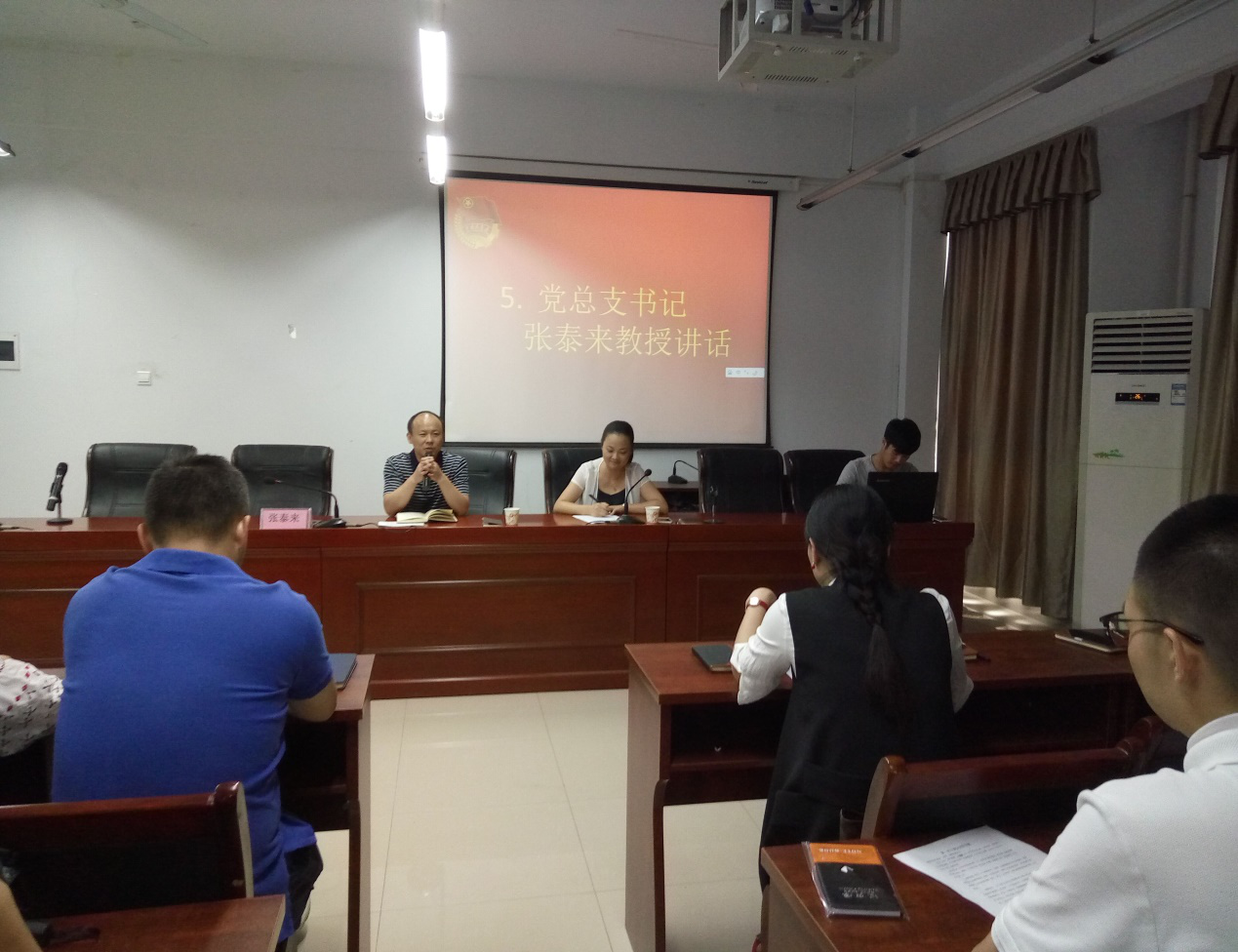 8月30号下午三点,我院在16410举行新书记见面会暨新学期工作布置会,新任党总支书记张泰来教授、党总支副书记徐丹老师、学工办辅导员和全体院干出席,会议由徐丹老师主持。