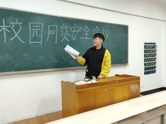 会议开始,曹诗楠从校园网贷的源头入手,结合具体事例进行分析,她讲到现在许多网贷平台采用虚假宣传、降低消费门槛、隐瞒实际资费等方式,诱导学生过度消费。因此同学们在金钱面前应保持清醒的头脑,理性消费。曹依琳也发出号召,希望各班组织召开校园网贷安全教育主题班会,让同学们了解网贷的弊端,提高自身辨别能力,树立正确的消费观,自觉远离网贷。