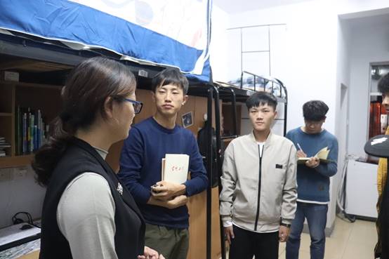 在走访过程中,徐丹走进19级新生们的寝室,仔细询问了同学们的住宿情况,希望同学们能健康饮食、安全用电,同时积极响应学校零点熄灯活动,规律作息。在走访文明寝室和党员寝室后,徐丹对这些寝室卫生环境表示肯定,并希望他们继续发挥模范带头作用。随后,她前往16级同学们的寝室,对寝室进行文明检查,并耐心了解各寝室的考研和就业情况,鼓励同学们积极参与学校秋招,抓住机会最佳就业时机。