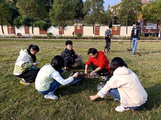 此次清扫的地点是阳光大草坪北侧区域,主要清扫塑料袋、易拉罐、杂草等杂物。同学们以小组为单位分片包干,不怕脏、不怕累,干得热火朝天。一遍又一遍,他们的双手浸入了污渍,他们的两颊流下了汗水。最后,经过近两个小时的辛勤劳动,阳光大草坪的环境焕然一新。