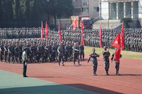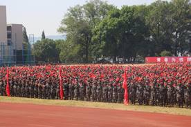 9月29日,持续两周的军训画上圆满的句号,上午八时,在东院田径场中,阅兵式正式开始。随着国歌的音乐响起,五星红旗随风飘扬上升,全场敬礼,场面庄重严肃。