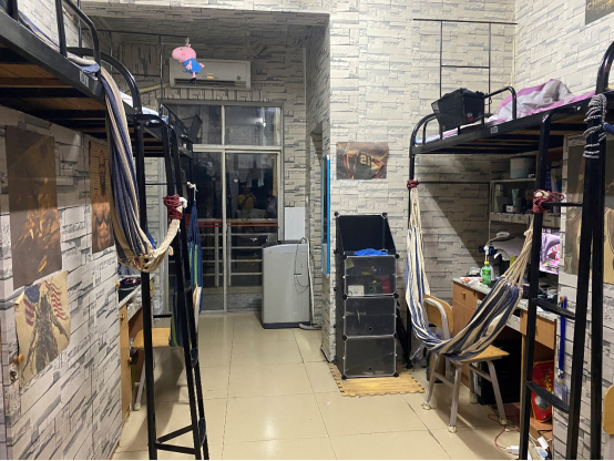 我们寝室有四个人分别是张效林、杨博文、陈业骏、王荣辉。我们寝室的墙面用蓝色壁纸装饰,营造出一种温暖、整洁的寝室环境,给我们自己提供一个的能安心休息、专心学习的港湾。在校期间多次获评校院级周文明寝室,在大一期间因寝室学习氛围浓厚还被评为校读书之星寝室,寝室长杨博文也获评了十佳寝室长的荣誉称号。