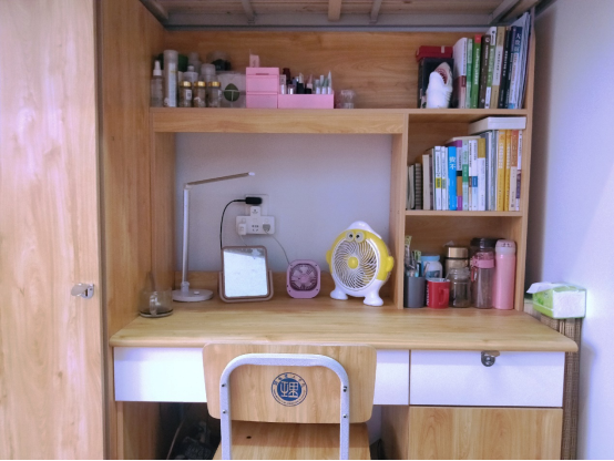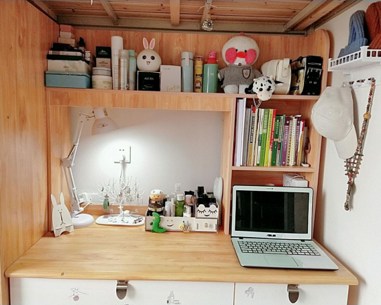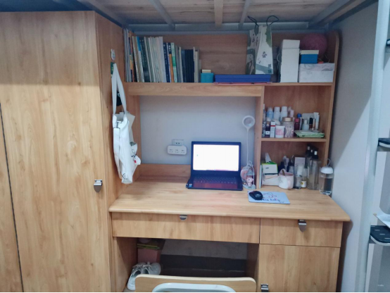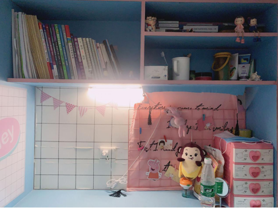 2#512寝室的四位成员都是清一色的湖南妹子,性格各异却组成了一个融洽的四口小家。机敏聪慧的四人凑在一块总会自带不同程度的憨憨气质,因此便自行为宿舍冠以戏称——佩奇之家。寝室风格以简约温馨为主,内部整洁、温馨,是一个充满乐趣和人文气息的寝室。