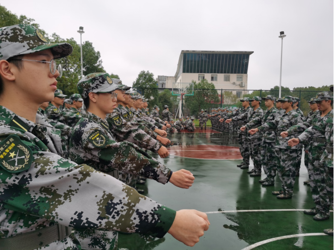 2020年作为一个特殊的年份,疫情下的严格管控、连绵不断的阴雨天气,成为了信息学子面对军训的第一个考验。虽然并不是一番风顺,同学们却能乘风破浪。“双脚后跟并拢,膝盖伸直,重心前倾…”面对恶劣的天气,同学们依然军姿笔挺。百炼成钢,无惧风雨!他们在坚持着,纹丝不动地进行着训练,气势磅礴的接受着考验。
