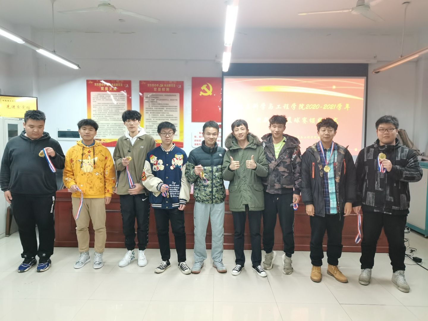 2020年11月27日19:00,太阳集团tyc1512020-2021学年“迎新杯”篮球赛颁奖仪式在16410举行。18级辅导员李亦波、19级辅导员王勤、20级辅导员荀仕杰、许婕菲出席,获奖班级学生代表参加。