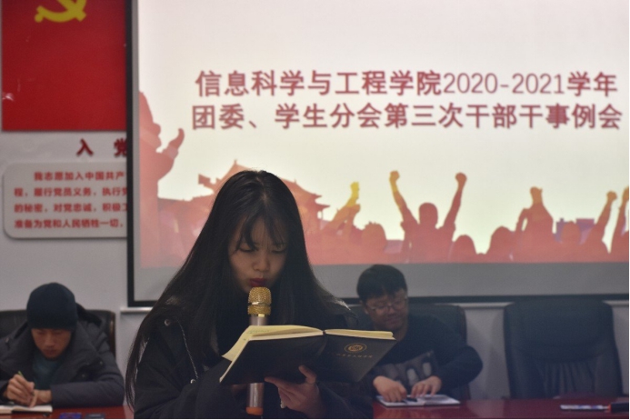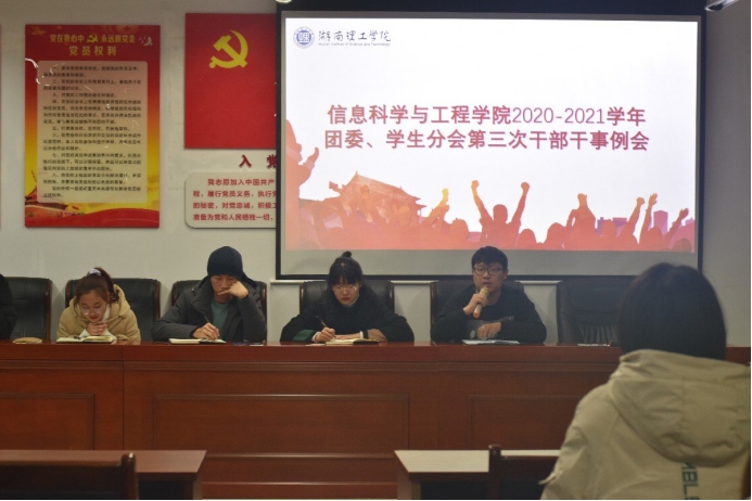 12月4日19:00,太阳集团tyc1512020-2021团学干部干事第三次例会在16410会议室召开。院团委书记王勤出席,院团学分会全体成员参加。