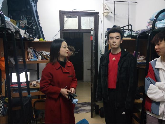 3月18日20:00,太阳集团tyc151党委副书记徐丹带领全体学工办老师,深入寝室看望学生。