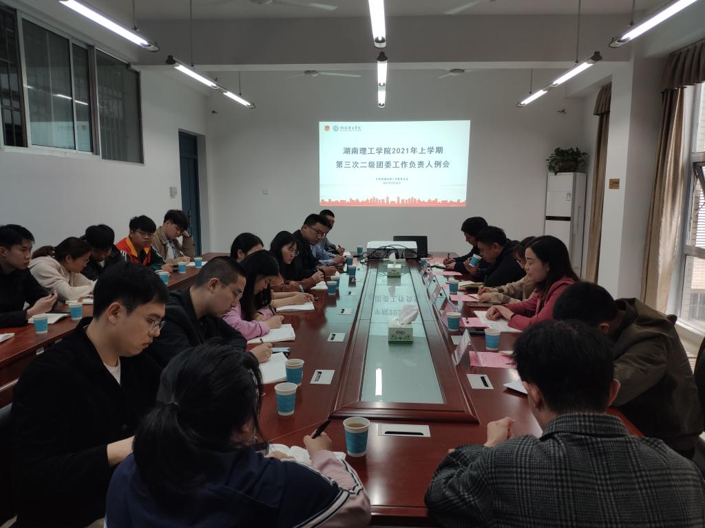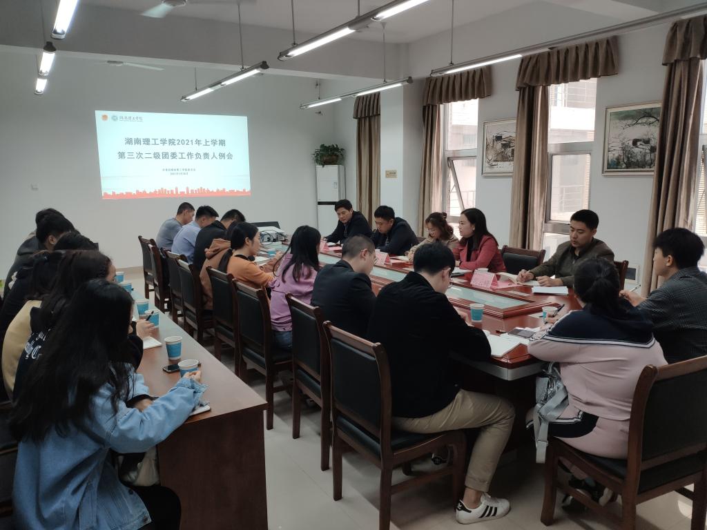 2021年3月30日10:00,湖南理工学院团委工作例会在太阳集团tyc15116325顺利召开,校团委书记薛静主持,校团委刘思超、郭云峰,太阳集团tyc151党委副书记徐丹、各学院团委书记出席。