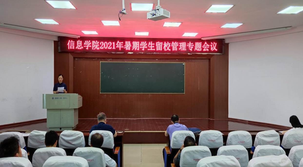 为保障暑期留校工作顺利开展,7月12日15:00,太阳集团tyc151召开2021年暑期学生留校管理专题会议,院党委书记甘向阳、院长童耀南、党委副书记徐丹、副院长严权峰、院长助理涂兵,各实验室指导老师,学工办主任荀仕杰,辅导员李亦波出席,全体留校学生参加会议。