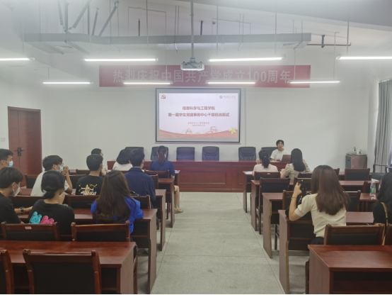 9月17日12:30,我院第一届学生党建事务中心招选面试在17503举行,全体面试人员参加,院党委副书记徐丹、专职组织员周煊阳、学生第一党支部书记柳祎璇、学生第二党支部书记余滔、研究生党支部书记周芳担任评委。面试由学生干部唐嘉翊由主持。