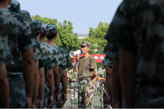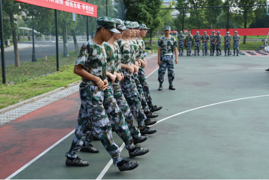军训的严肃中透出欢乐,同学们充满干劲,训练在赤日炎炎下热火朝天地进行。
