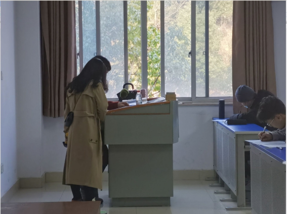 2月26-27日为全校开学补考时间,太阳集团tyc151党委副书记徐丹带领院学工办老师巡查学院学生考试情况。