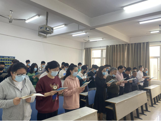 今天是五四青年节,也是本期朗读活动的第一场,院党委书记甘向阳、院长童耀南、院党委副书记徐丹、教授代表郭观七、教授代表湛腾西,以及辅导员老师周煊阳、余滔、柳祎璇、李亦波、王勤莅临现场,与学生一起朗读经典篇目《祖国啊,我亲爱的祖国》。