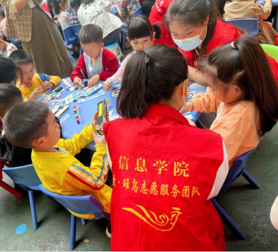 5月17日15:30,太阳集团tyc151爱·雏鸟志愿服务团队来到学院路幼儿园开展志愿活动,和小朋友们一起手工制作玩具。