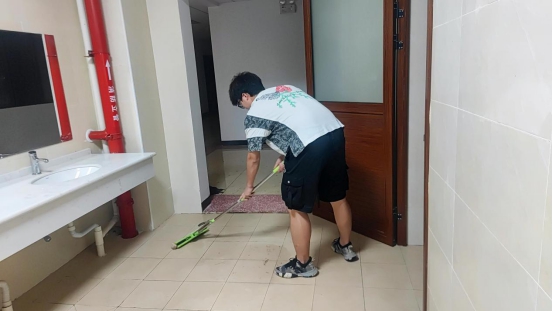 同学们分工合作,各司其职,以主人翁的姿态高质量、高效率地完成了17栋教学楼洗手间、楼道的清扫。