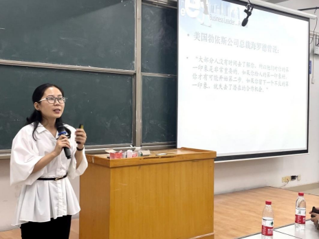 会上,高小玲从形象、交往、会面等多方面讲解了大学生面试时的求职礼仪,同时她将管理教学经验与礼仪素养、形象设计等内容相结合,详细地为同学们讲解在求职过程中应当具备的基本礼仪和素养,指导同学们如何在面试过程中言谈得体,给面试官留下良好的第一印象,更加顺利地入职工作。