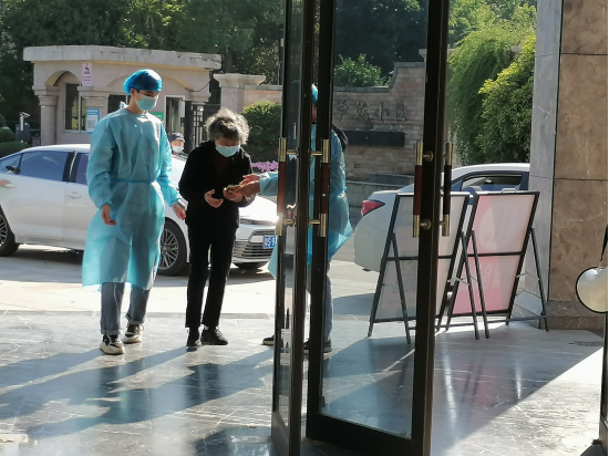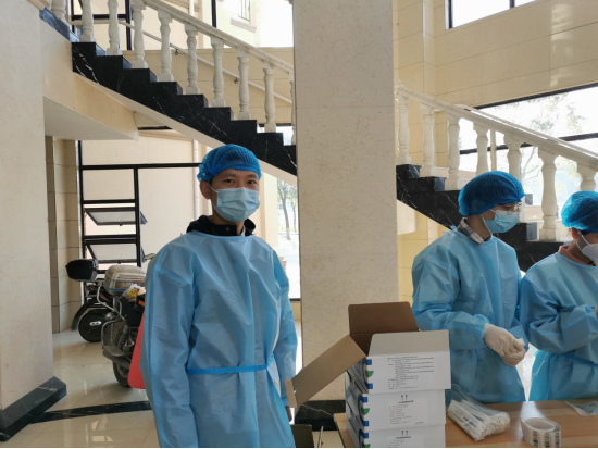 早上7点40全体工作人员就位,在全员核酸检测之前,学院志愿者已准备好消毒液、医用隔离服、医用手套、咽拭子等物品。核酸检测时志愿者身着防护服为师生们扫码登记信息并提醒大家核对好个人信息。“请大家戴好口罩,间距1米,扫场所码,凭场所码录入信息”,这是志愿者回响在11号核酸检测点最温暖的声音,他们不遗余力地维护秩序,保证了现场秩序井然。